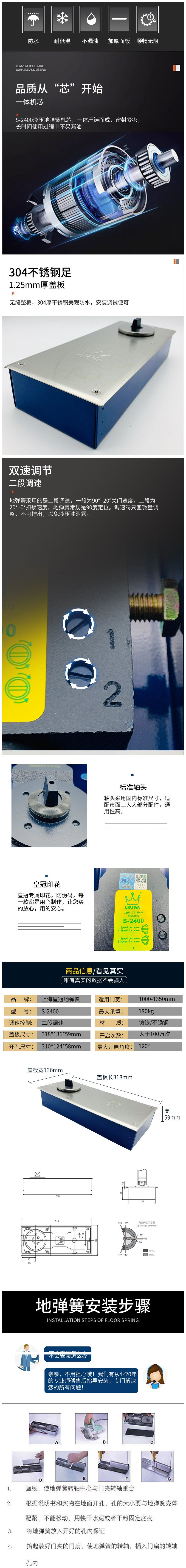 上海皇冠地弹簧S2400重型玻璃